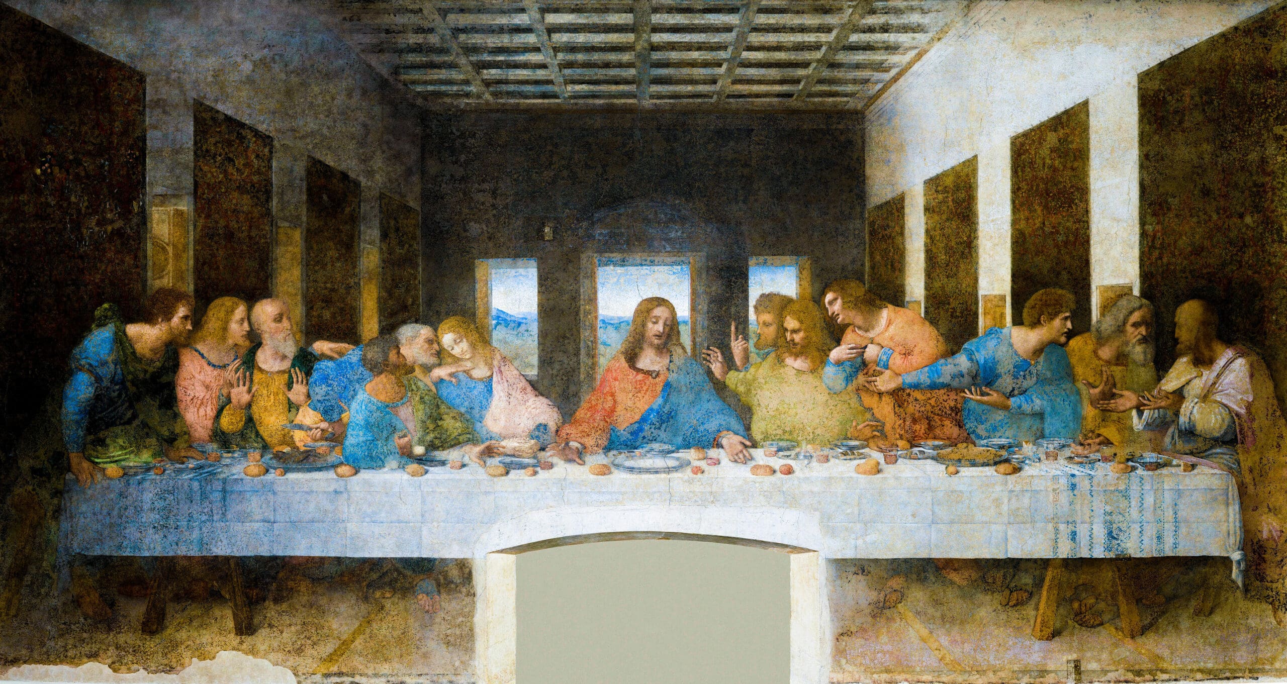 Grey begins by highlighting the ways in which the Last Supper has been depicted over the centuries. Early representations, from late antiquity through the Renaissance, typically made little effort to imitate any sort of historical reality, focusing instead on the theological and symbolic significance of the biblical story and the physical objects involved. Jesus and the disciples tended to be shown in a lavish contemporary dining space, on cushioned seats around or along one side of a central table set with elegant serving dishes. While such depictions bore virtually no resemblance to an authentic first-century space, they enabled artists like Leonardo da Vinci to explore thematic elements, symbols, and individual persons with great artistic freedom.