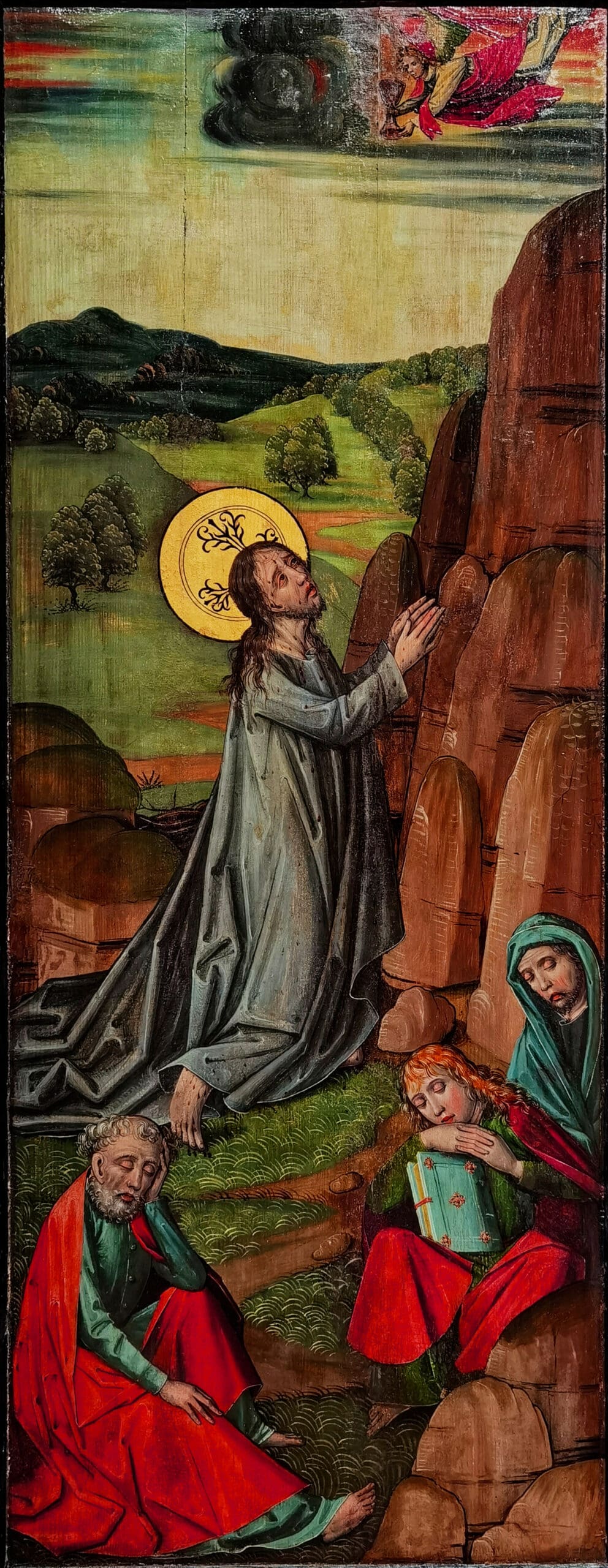 “Agony in the Garden of Gethsemane” by anonymous (ca. 1480 CE), originally presented as a diptych with “Mocking of Christ.” Courtesy Colmar, CC BY-SA 4.0, via Wikimedia Commons.